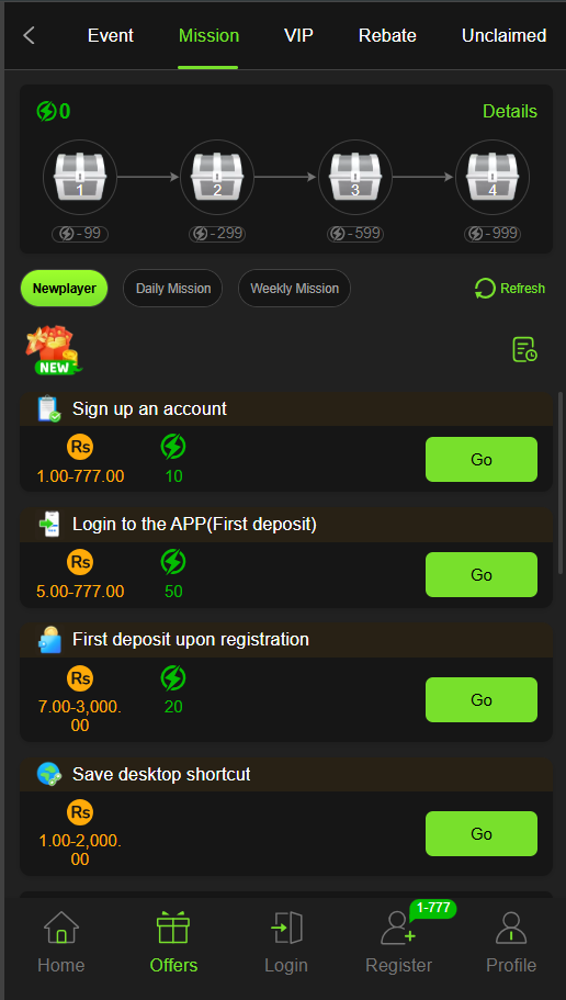 Earn Rs500 for every friend who registers and deposits. Promoting the app increases passive income.